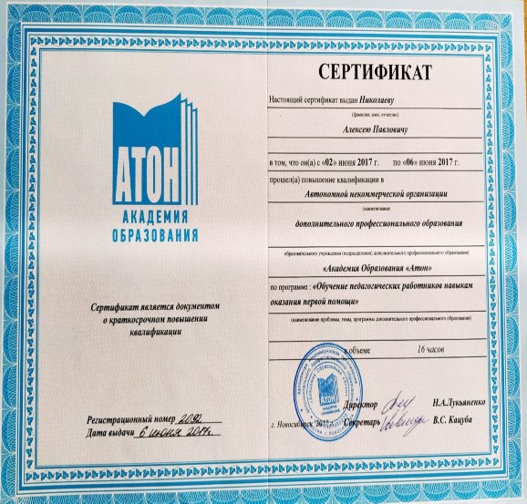 Академия Образования «Атон»:«Обучение педагогических работников навыкам оказания первой помощи»