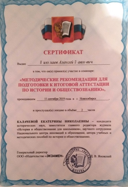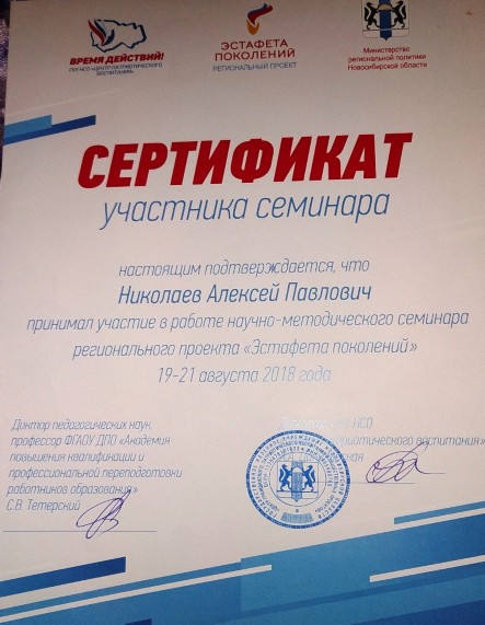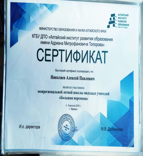 Сертификат участника межрегиональной летней школы молодых учителей |