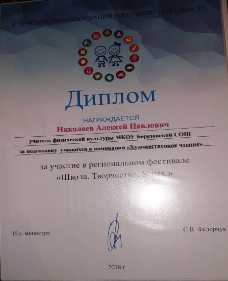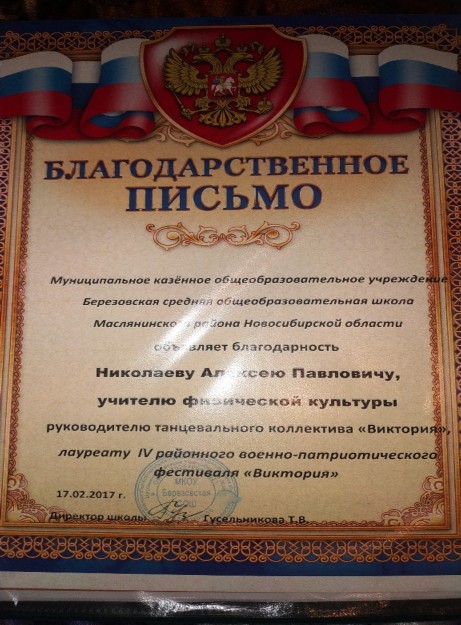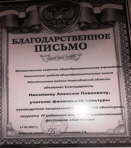 | Кубок за подготовку учащихся к фестивалю "Виктория" |