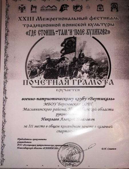 | Почетная грамота "Где стоишь -там и поле Куликово" |