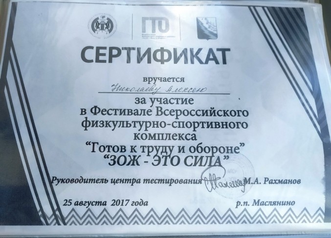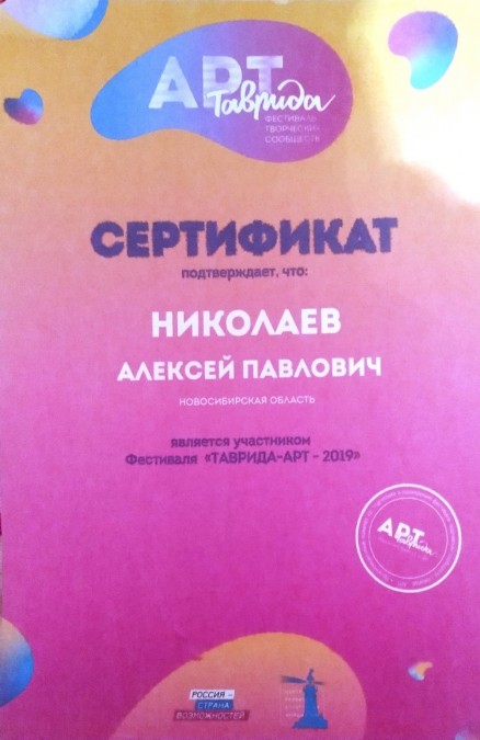 | Сертификат участника фестиваля "Таврида-арт-2019" |